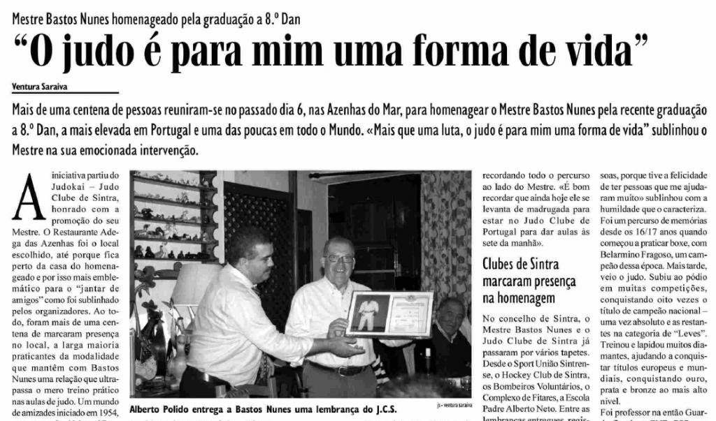 Está disponível na edição de 12 de Novembro de 2010 o artigo sobre o Jantar de Homenagem ao Mestre Bastos Nunes que se realizou no dia 6 de Novembro.